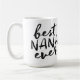 Esta taza adorablemente moderna ofrece la palabra la "mejor Nana" escrita nunca en una escritura manuscrita negra.