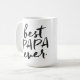 Esta taza adorablemente moderna ofrece la palabra la "mejor papá" escrita nunca en una escritura manuscrita negra.