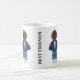 Este tazón de café incluye acuarelas mejores amigos usando una chaqueta de jean con el símbolo Aries y el símbolo Leo. Añade tus nombres para personalizar. Texto del personalizable "Mejores Amigos" a un lado. Hace un gran regalo para tu bienestar.