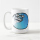 Mentí meme cómico de la cara de la rabia. Blanco y negro azul. Abra la boca, bigote, riendo, los dientes blancos.