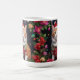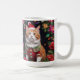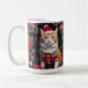 Un gato real vestido con un traje de santa Claus con un fondo floral, un diseño vintage