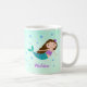 Esta taza presenta un bonito diseño de sirena con pez estrella y purpurina falso morado. Personalizarlo con un nombre.