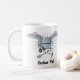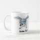 Mezclador de hormigón beige con alas, pickaxe y pala. Texto personalizado en cada lado.