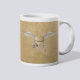 Mezclador de hormigón beige con alas, pickaxe y pala.