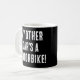 Muéstrales que eres un fanático de la moto. Esta taza de café tiene el lema "¡Mi otro auto es una moto!".