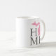 El elegante tazón de café personalizado presenta un diseño de tipografía con texto "Home" y mapa del estado de Michigan. Haga clic en la opción Personalizar para mover el marcador de ciudad del corazón blanco a ambos lados de la taza. Puedes situarlo directamente sobre la ciudad donde vives o en tu ciudad natal. Color gris, rosa y blanco del carbón vegetal.