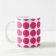 Mini Polka Dots Mug. Este diseño presenta pequeños puntos de polka circular en rosa y blanco. Se puede añadir texto a este diseño para darle un toque personal.