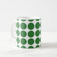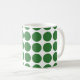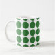Mini Polka Dots Mug. Este diseño presenta pequeños puntos de polka circular en verde y blanco. Se puede añadir texto a este diseño para darle un toque personal.