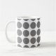 Mini Polka Dots Mug. Este diseño presenta pequeños puntos de polka circular en gris y blanco. Se puede añadir texto a este diseño para darle un toque personal.