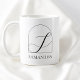 Minimal Arch Black Script Initial S Name Monogram Coffee Mug design features a clean arch frame paired with elegant script calligraphy typography that highlights a personalized initial above a classic name line. The balanced arch shape creates a structured yet soft composition, while the flowing script lettering adds a refined and feminine touch. The combination of minimalist arch framing and modern calligraphy typography gives the design a timeless personalized monogram style created especially for her.