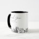 Taza de café con la moderna silueta de Columbus, regalo con la inscripción "gracias". El diseño muestra un boceto impresionante con la capacidad de personalizar sus nombres y ubicación exacta. Ingrese a la herramienta de diseño de Zazzle para personalizaciones adicionales.