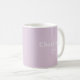 A modern minimalist personalized mug featuring a soft pastel background, elegant white lettering, and a delicate heart detail.