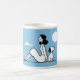 Minimalist illustration of a woman sitting with her dog under the moon.