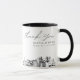 Taza de café con la moderna silueta de Tucson, regalo con la inscripción "gracias". El diseño muestra un boceto impresionante con la capacidad de personalizar sus nombres y ubicación exacta. Ingrese a la herramienta de diseño de Zazzle para personalizaciones adicionales.