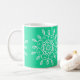 Esta mandala blanca se asienta sobre un fondo verde minado. Los colores son muy relajantes y claros. Parte de la colección Avanenn Mandala.