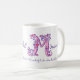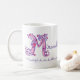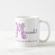Letra M dibujada a mano que significa mug. El corazón de bonito y la capital floral M diseño tipográfico garabateado con corazones y flores y las palabras Miranda Maravillosa que debería ser admirada en rosa y morado. © Arte y diseño únicos de Sarah Trett. www.sarahtrett.com para www.mylittleeden.com en zazzle