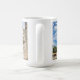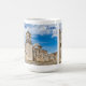 Diseño de taza único con una de las hermosas Misiones Españolas, localizada en San Antonio, Texas. Esta es la Misión San José de la esquina delantera que muestra el campanario y la torre de la cúpula. También cuenta con una foto de primer plano de los increíbles detalles que rodean la entrada de la puerta de madera.