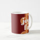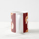 Cuidada decoración contemporánea clásica de color rojo oscuro, coral y color naranja de melocotón pastel con un patrón de olas abstractas retro. Café o taza de té colorido de temporada navideña con un diseño elegante, elegante y ecléctico para el amante del arte retro artístico vintage.