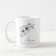 Modern Black Script Beautiful Arch Elegant Floral Coffee Mug design features delicate botanical flowers arranged around a soft arch frame that highlights a personalized name in elegant script calligraphy typography. The combination of floral illustration and graceful lettering creates a refined, feminine aesthetic. With its balanced arch shape, botanical flowers, and elegant script typography, this floral design offers a timeless and stylish look created especially for her.