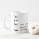 Modern Minimal Fifty and Fabulous black 50th birthday party personalized with name and date mug that you can personalize for your fiftieth birthday. The words are set using trending bold font typography.