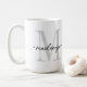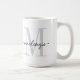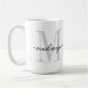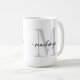 Add a touch of modern elegance to your routine with this personalized monogram coffee mug design featuring a large initial and name in script. Perfect for yourself or as a thoughtful custom gift. Created by Simply Farmhouse Press.