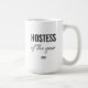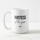 Modern Simple Black Script Personalized Hostess Coffee Mug.