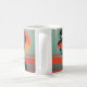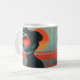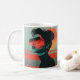 tazón de café personalizado con una mujer moderna y moderna con ilustracion retro al atardecer.