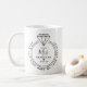 Moderno '¿Este anillo me hace parecer comprometido?'. Un lindo regalo para la que pronto será novia. Con un ilustracion de un anillo de compromiso, el texto "Future Mrs. (añádase el nombre) y la fecha de la propuesta o del boda previsto. ¡Una gran oportunidad de fotos para posar con esta taza y anunciar tu compromiso en los medios sociales!