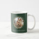 Chrismas Coffee Mug con elegante apariencia con la corona de navidades acuarela con una plantilla de fotografía familiar en fondo verde saga puede añadir fotos de familia , puede cambiar el color de fondo, tipo de letra y color como tu desee.