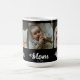 Custom Mom Established Modern Bold Script Black 3 Photo Coffee Mug with White Text on a Black Background. Replace the photos with your own and change the years to the year(s) you became a mom (add multiple years if you have more than one child). You can change "mom" to mum or mama if needed (leave the little square in place).
