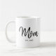 Minimal and modern, this Mom Established script design features clean black lettering on white. A perfect customizable gift for a new mom, it highlights the established year in a chic, timeless style. A thoughtful modern gift she’ll love.