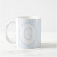 This elegant monogram mug features a soft blue and white striped design with the letter G in the center.