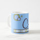 Taza De Café Monograma azul de punto y franjas de polka