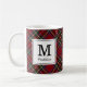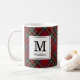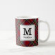 Taza De Café Monograma clásico de vacaciones en tartán rojo