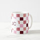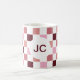 Monograma de Borgoña Rosa Moderno y de Borgoña Simple Café Mug muestra un audaz y elegante patrón de tablero de ajedrez en tonos rosa y borgoña. El diseño geométrico clásico, combinado con un monograma personalizado, le aporta un toque de moda moderno a su rutina de café. Perfecto para el uso diario o como un regalo de cumpleaños para ella, esta taza mezcla el estilo preppy con la elegancia atemporal, lo que lo convierte en una adición divertida y única a cualquier cocina. 🦋 Puede personalizar fácilmente el producto añadiendo sus iniciales para que sea completamente único. También puede cambiar el color de fondo y el tipo de letra a su gusto abriendo "Personalizar esta plantilla" > "Editar usando la herramienta de diseño".