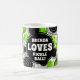 Una taza de café divertida con un diseño moderno de bolas de picnic verdes y espirales sobre un fondo blanco de líneas redondas y rectas negras. Perfecto para los amantes del pickleball. Puedes cambiar la redacción a lo que quieras. El estilo, el color y la posición de la fuente también pueden cambiarse a su gusto.