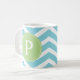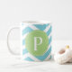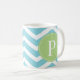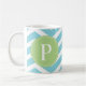 Personalizar este vibrante patrón de chevron verde, azul y blanco y círculo monograma con el nombre de su elección.