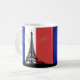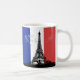 Esta taza de café de la moda ofrece un gráfico negro de la torre Eiffel con "París" en escritura moderna con un nombre para que usted personalice. El fondo es la bandera roja, blanca y azul de Francia. Diseñado por el ©Tim renombrado Coffey del artista del mundo.