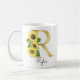 Taza De Café Monograma de oro con girasol inicial R floral feme