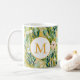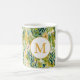 Taza De Café Monograma de Patrón de Acuarela de Flor Verde Colo