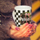 Taza De Café monograma de tablero de ajedrez blanco y negro de