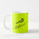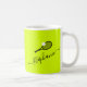 Elegante monograma femenino de tenis en una taza personalizada con un nombre de escritura elegante sobre un fondo amarillo brillante, verde y negro que puede cambiarse a cualquier color, perfecto para una mujer o chica de tenis, entrenadora, instructora, consejera del campamento o compañero de equipo.