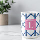 Taza De Café Monograma del patrón de bambú del barril azul prep