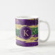 Taza De Café Monograma del patrón de brochas de oro púrpura ver