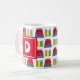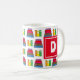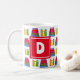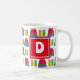 Esta taza de monograma del patrón del libro es perfecta para tomar té mientras lee tu libro favorito. A cualquier ratón de biblioteca le encantará el patrón de libro colorido.