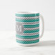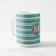 Taza De Café Monograma del zigzag de chevron turquesa y gris