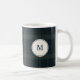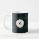 Navidades modernos taza de café con un diseño atemporal con tu monograma sobre un fondo azul marino mudo y verde rollido.