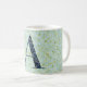 Taza De Café Monograma elegante floral Una frase azul con