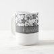Monograma elegante y patrón floral. Este patrón blanco y negro monogramado de taza es el regalo perfecto para ella. El diseño presenta un diseño clásico de tonos grises y negros. Personaliza la taza con su nombre o apellido.