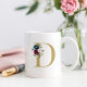 Taza De Café Monograma floral de acuarela de borgoña de marina